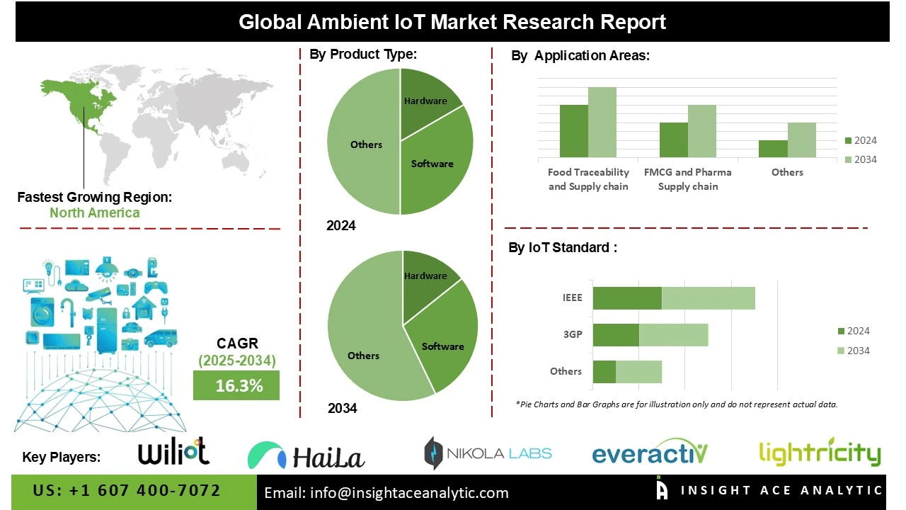 InsightAce Analytic Pvt. Ltd. announces the release of a market assessment report on theGlobal Ambient IOT Market Size, Share & Trends Analysis Report Product Type (Hardware, Software Platform, and Services), By Application (Food Traceability & Supply Chain, FMCG & Pharma Supply Chain, Ecommerce Delivery Solutions, Harvesting, Sensor-Based Monitoring of Equipment, Emissions Tracking, Building Automation And Air Quality Tracking, and Others), By End-User (Agriculture, Food & Beverage, Pharmaceutical, Apparels and Clothing Industry, E-Commerce Industry, and Others)-Market Outlook And Industry Analysis 2034″