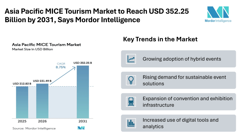 Home Press ReleasesAsia Pacific MICE Tourism Market to Reach USD 352.25 Billion by 2031, Says Mordor Intelligence