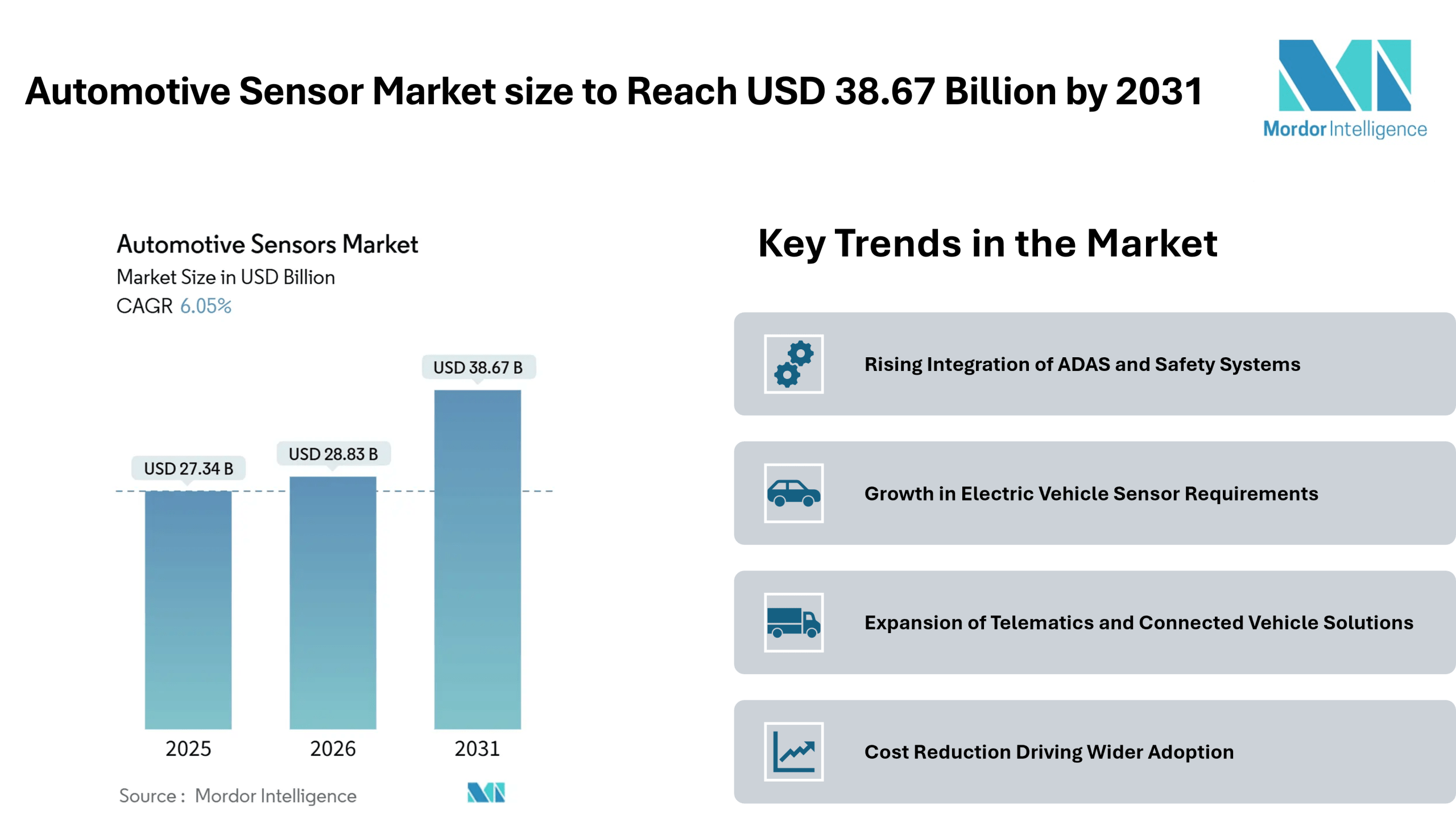 Home Press ReleasesAutomotive Sensor Market size to Reach USD 38.67 Billion by 2031, Driven by Expanding ADAS Integration – Mordor Intelligence