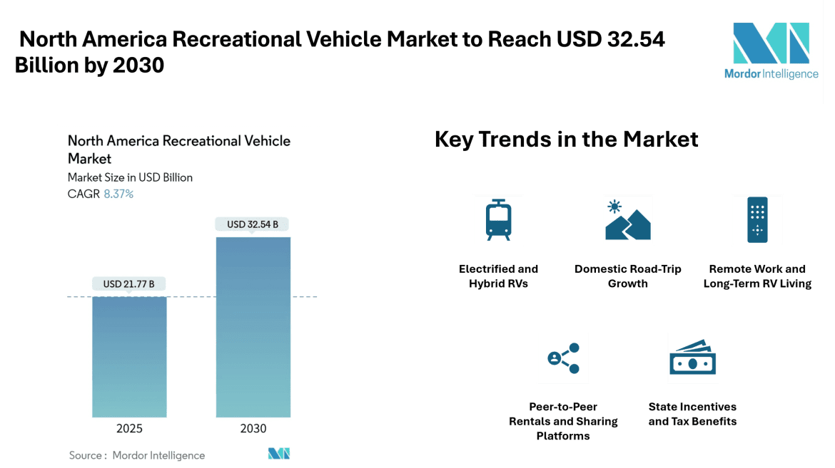 - Domestic Road-Trip Growth: Post-pandemic, domestic travel has become the preferred vacation mode. Increased RV ownership and higher average annual usage days indicate deeper lifestyle integration, particularly among buyers under 50.