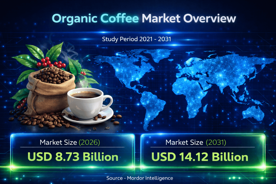 According to a research report by Mordor Intelligence, the organic coffee market size is projected to grow from USD 8.73 billion in 2026 to USD 14.12 billion by 2031, registering a CAGR of 10.09% during the forecast period. The market is witnessing strong momentum driven by rising demand for certified sustainable beverages, increasing environmental regulations, and growing health awareness among consumers. As transparency, traceability, and ethical sourcing become critical purchasing factors, the organic coffee market is evolving into a premium and sustainability-driven segment.
