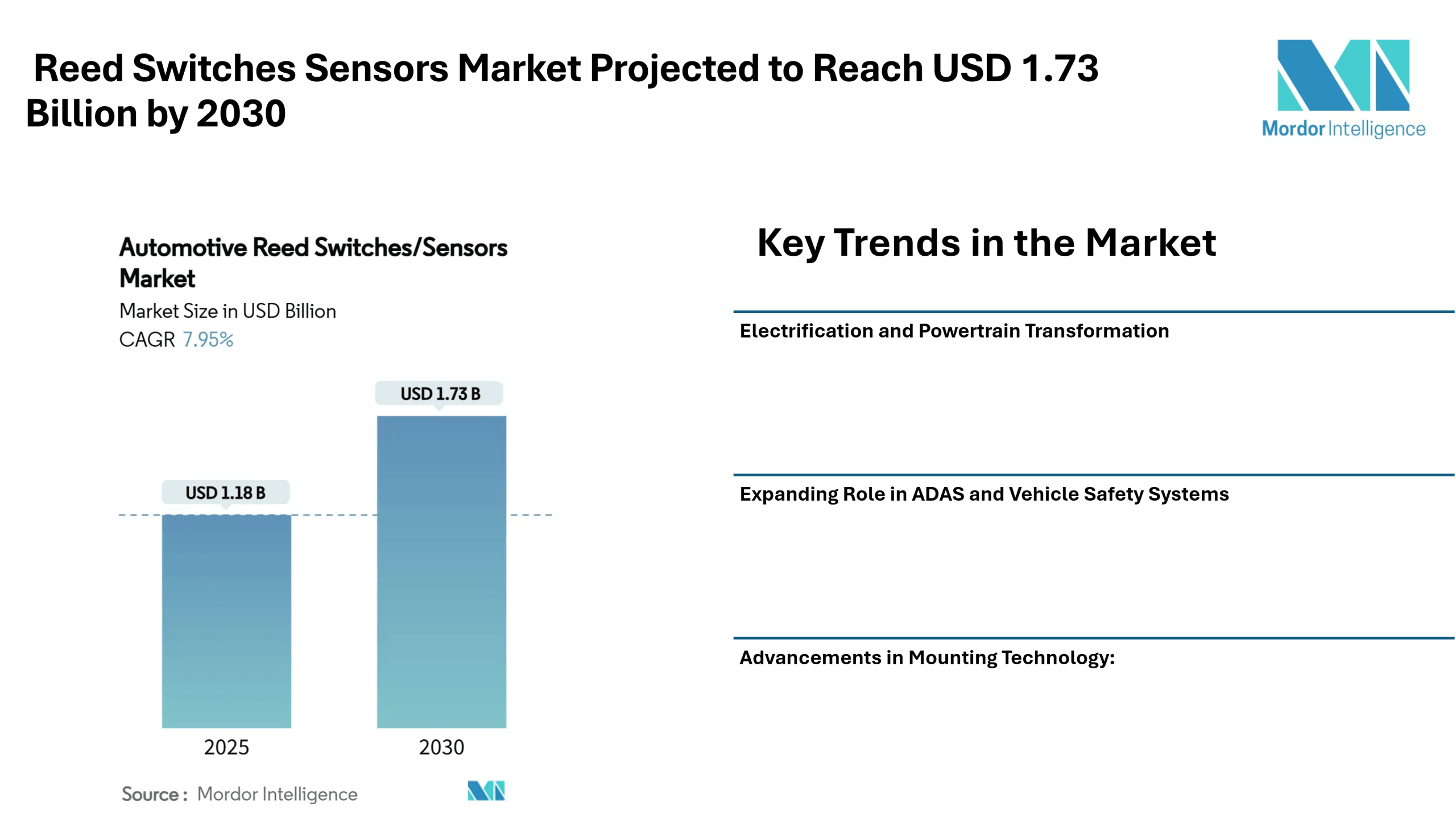 Home Press ReleasesReed Switches Sensors Market Projected to Reach USD 1.73 Billion by 2030, Driven by Automotive Safety and Electrification Trends – Mordor Intelligence