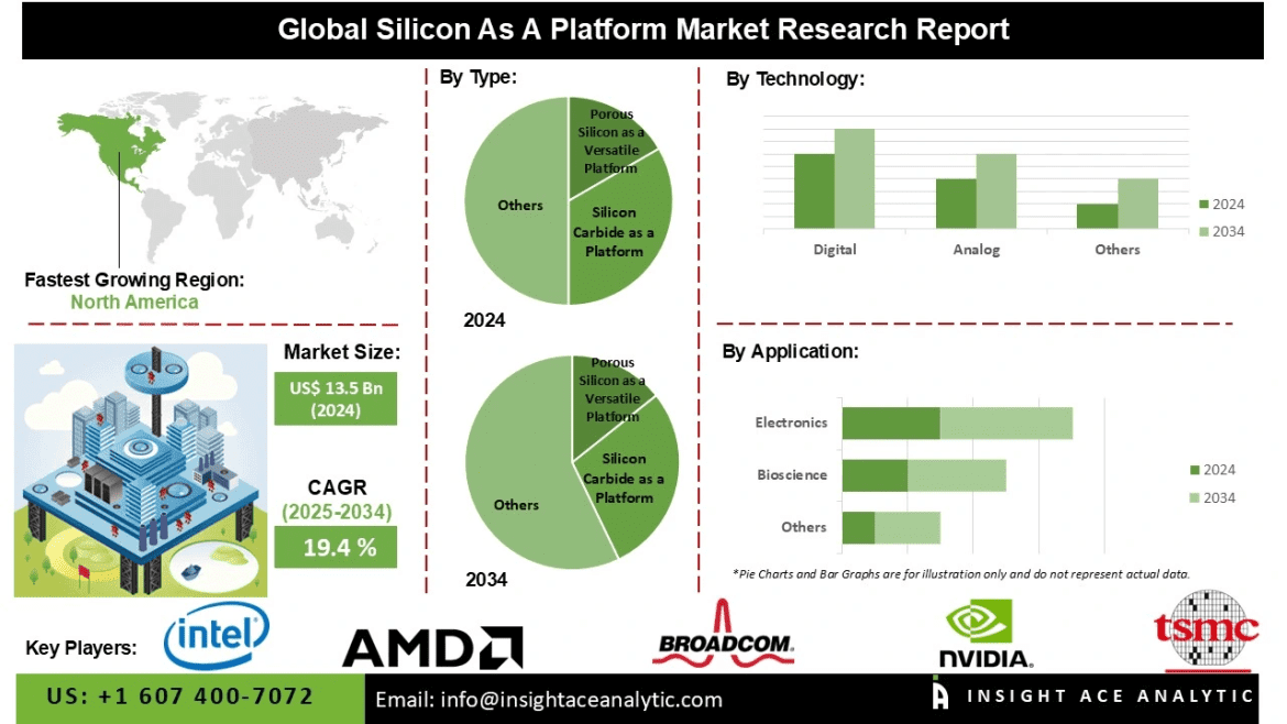 InsightAce Analytic Pvt. Ltd. announces the release of a market assessment report on theGlobal Silicon-as-a-Platform Market Size, Share & Trends Analysis Report By Type (Silicon Carbide as a Platform and Porous Silicon as a Versatile Platform), Application (Electronics, Bioscience, and Others), Technology (Analog, Digital, Radio Frequency, and Mixed Signal), -Market Outlook And Industry Analysis 2034″